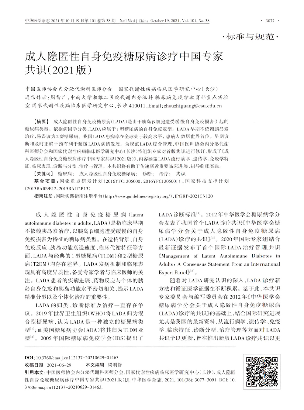 成人隱匿性自身免疫糖尿病診療中國專家共識(2021版)