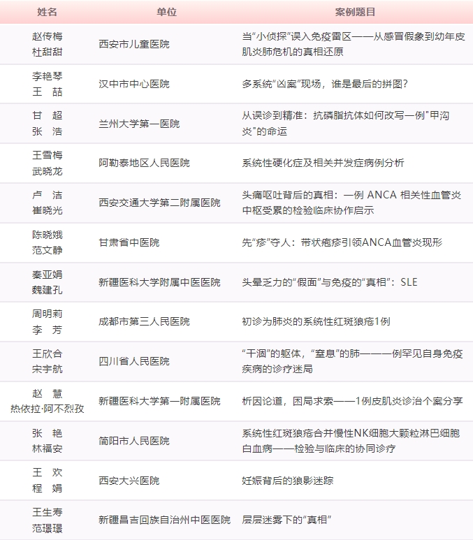 感謝參與本次西部區域案例展示的所有同仁們,以專業智慧與實戰經驗,為自身免疫疾病診斷提供寶貴借鑒經驗。期待后續活動中展現更多精彩案例,共同攜手點亮生命之光!